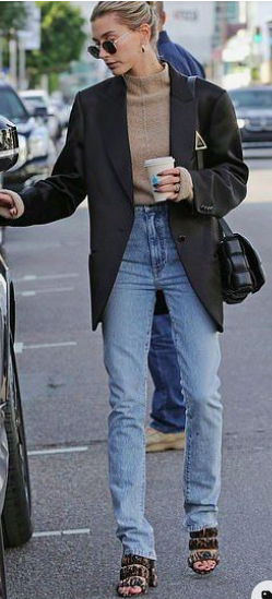 Whether you are busty or slim a single button slightly oversized blazer gives the best shape, even when worn open the single button still gives some definition to your waist. If you are busty or pear shaped, stay away from blazers with a super boxy shape, stick to a one button. Over-the-top embellishment and rolled sleeves, you are a big girl you can roll your own sleeves up. Try to avoid the dated, short fitted blazers of the naughties, these will show your age... think looser fit.