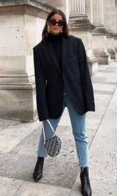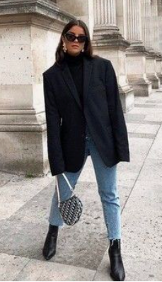 Oversized blazers are quite current, but they also don't really go out of style as long as you don't go for the comedy supersized shoulders. You don't want to go so oversized on the shoulders you look like your ready for the NFL. They should be only slightly oversized on the shoulders. The length of the blazer should fall either above or below the widest part of your hips not right on it or you will look like a box.